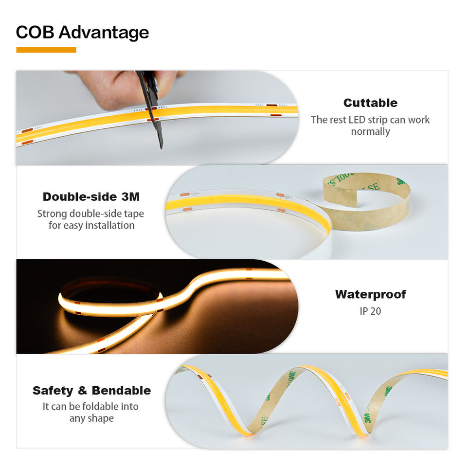 Efficient 48V IP20 ROHS Certified LED Cob Tape with Enhanced Performance Distance for Large-Scale Commercial Outdoor Lighting