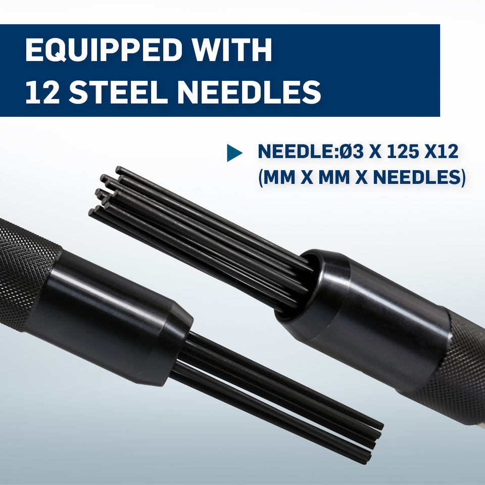 Efficient Surface Cleaning LEMATEC Air Needle Scaler LE-AN67 Featuring 4600 BPM 90 PSI 12 Needles 300mm Length 6 CFM Air