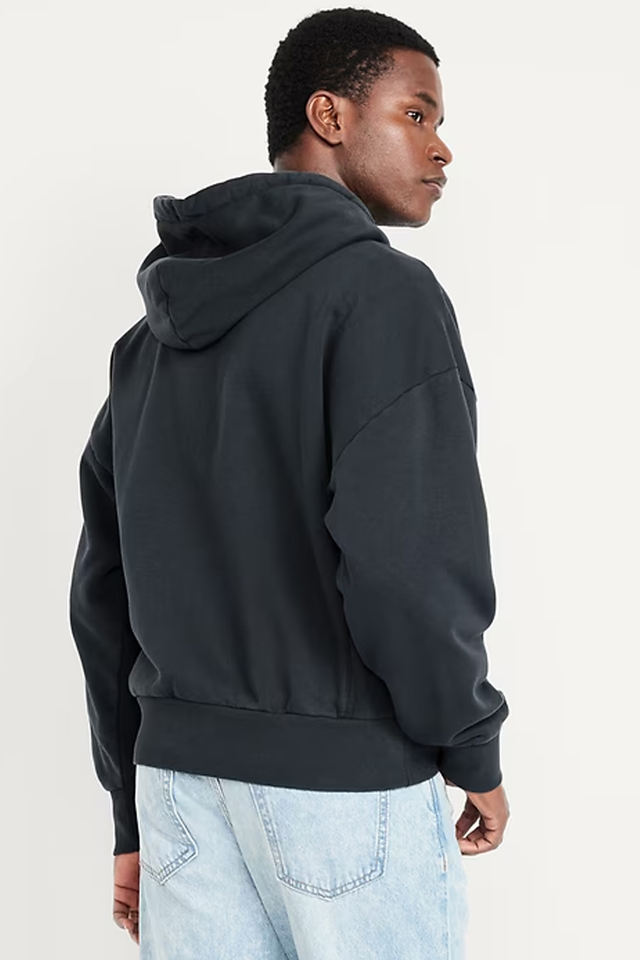 Effortless Urban Street Style Featuring a Black Zip-Up Hoodie, Light Wash Denim Jeans, White High Top Sneakers and Casual Layers