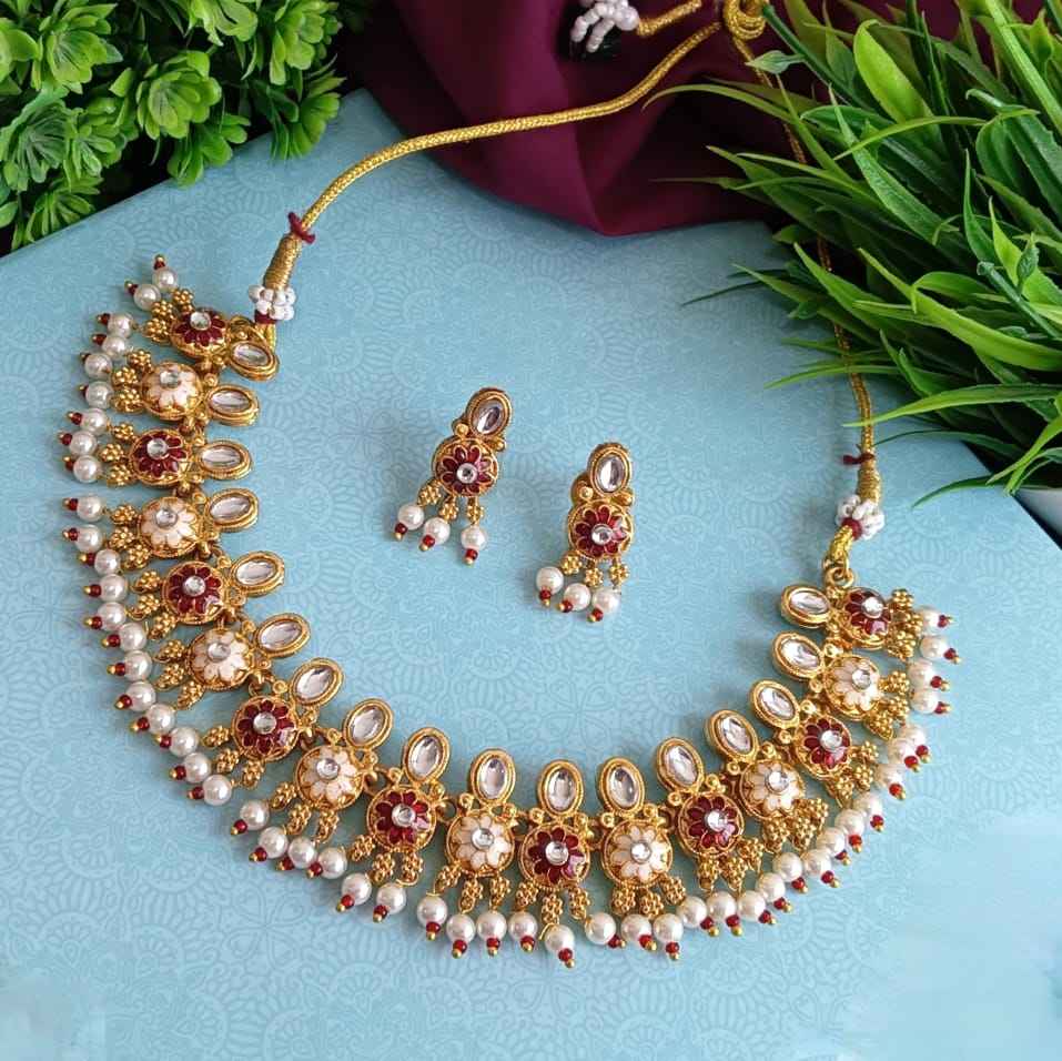 Efulgenz Indian Faux Pearl Kundan Crystal Floral Necklace Dangle Earrings Indian Wholesaler Manufacturer Jewellery for Women