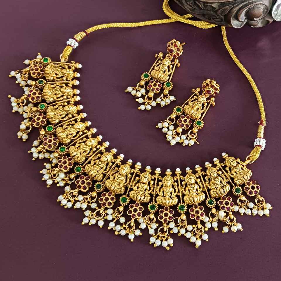 Efulgenz Indian Manufacturer Gold Plated Laxmi Choker Necklace Dangle Earrings Set Women's Bridal Jewelry Pearl Wedding