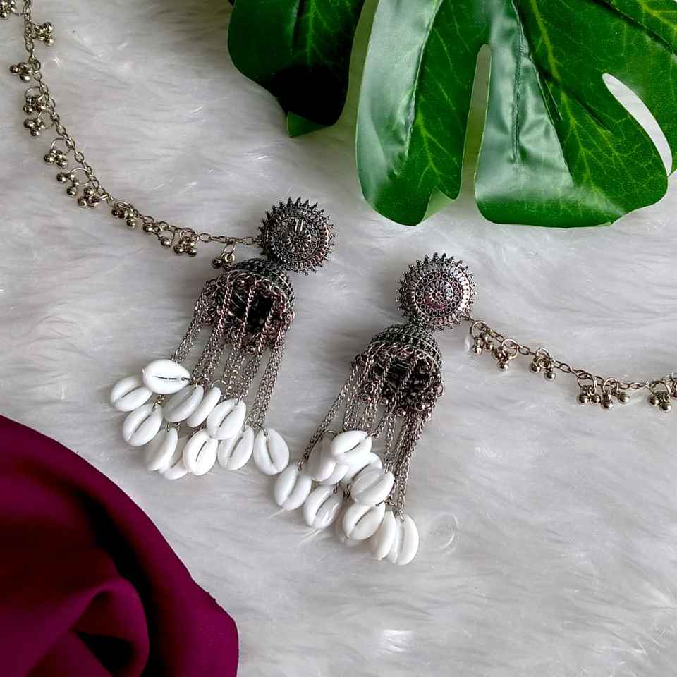 Design:Oxidized antique silver tone jhumki