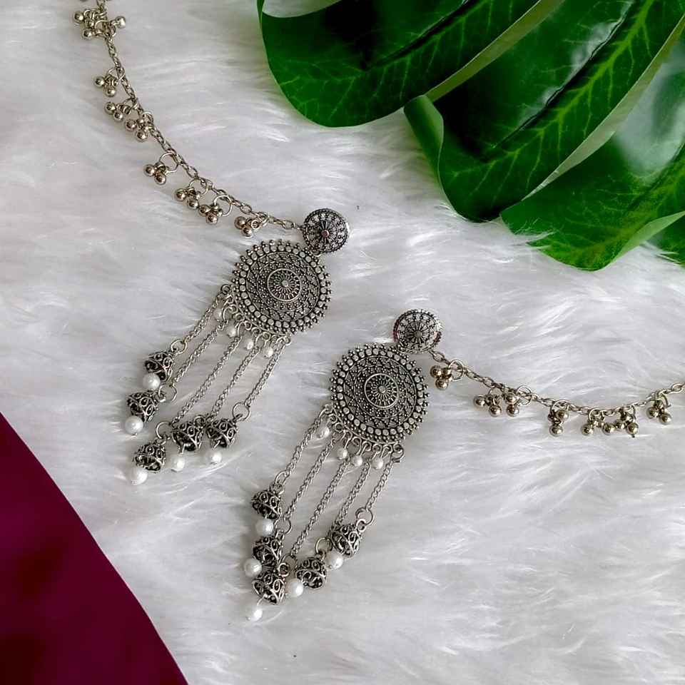 Design:Oxidized antique silver tone jhumki
