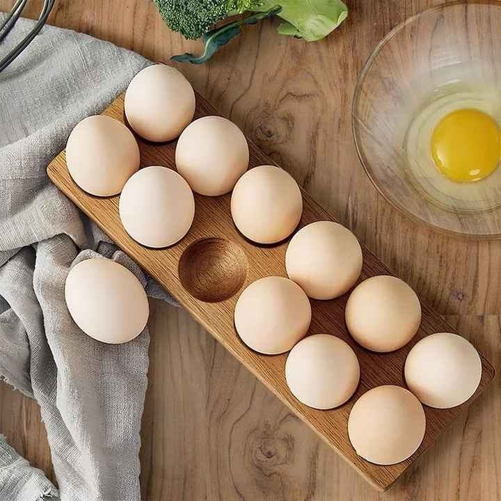 Handcrafted Wooden Egg Holder Tray 12 Eggs Classic Design Eco-friendly Rectangle Shape Plate Dish for Kitchen and Party Use