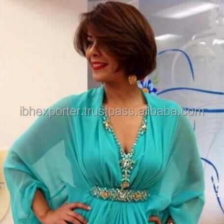 Egyptian Women Butter Fly Style Loose Kaftan With V-Neck Style and Stone Work