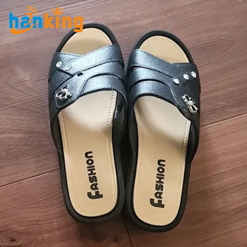 Ehanking Flat Slippers Women's Thick Sole Wedge Heels Slippers Ladies Trend Soft Bottom Non Slip Slippers
