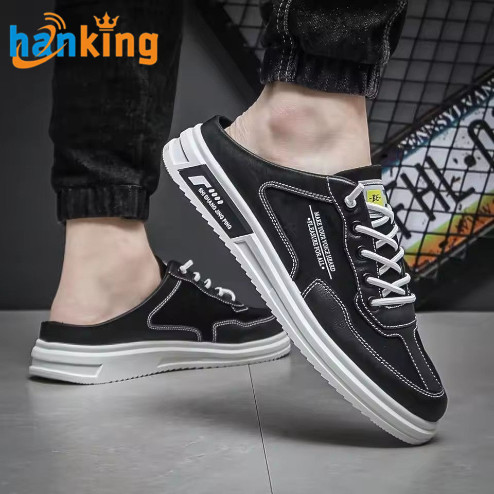 Ehanking Men's Casual Slip-On Half Slippers Canvas Flats Shoes Male Fashion Outdoor Anti-Slip Heel Less Sports Shoes