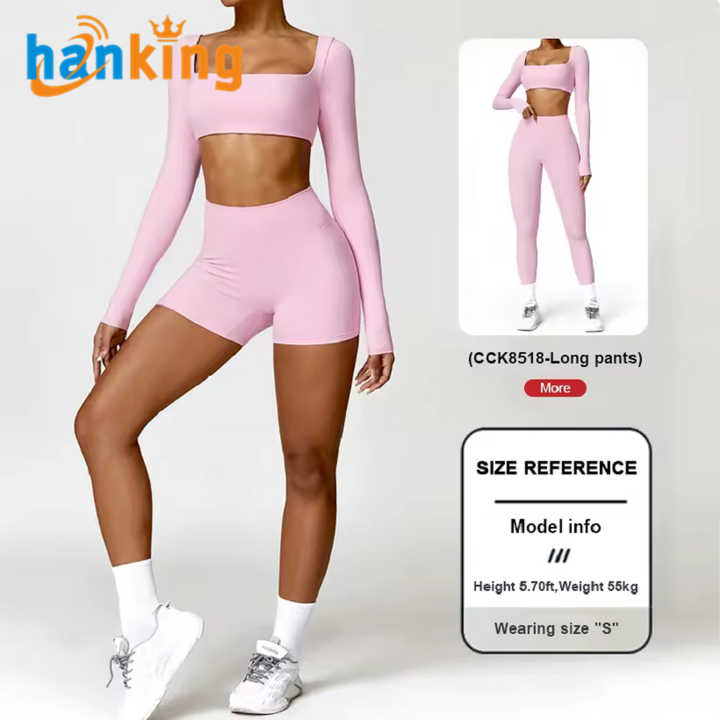 Ehanking Plus Size Solid Yoga Suit Women's Long Sleeve Crop Tops High Waist Butt Lifting Tight Shorts 2-Piece Running Fitness