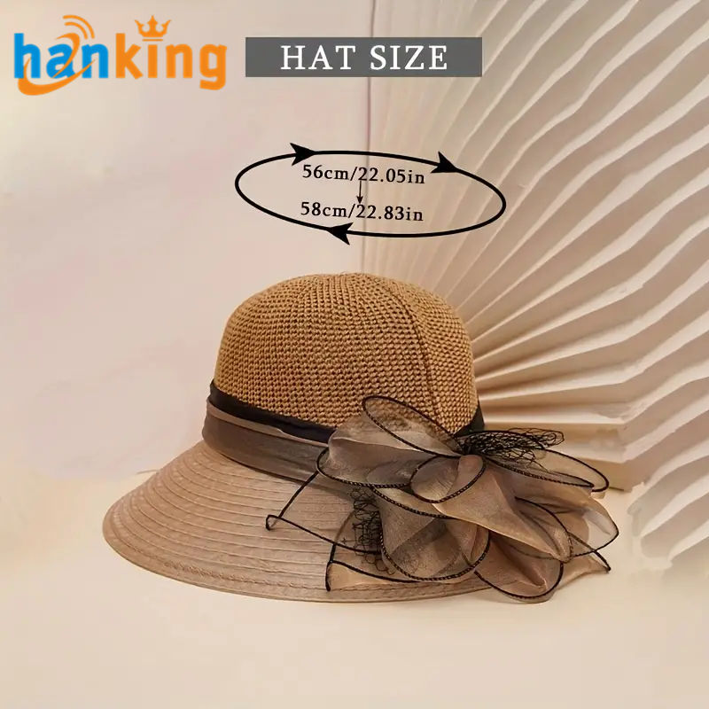 Ehanking Women's Church Derby Wide Brim Straw Bucket Hat Wedding Mesh Floral Hat Fascinator Beach Sun Protective Hat