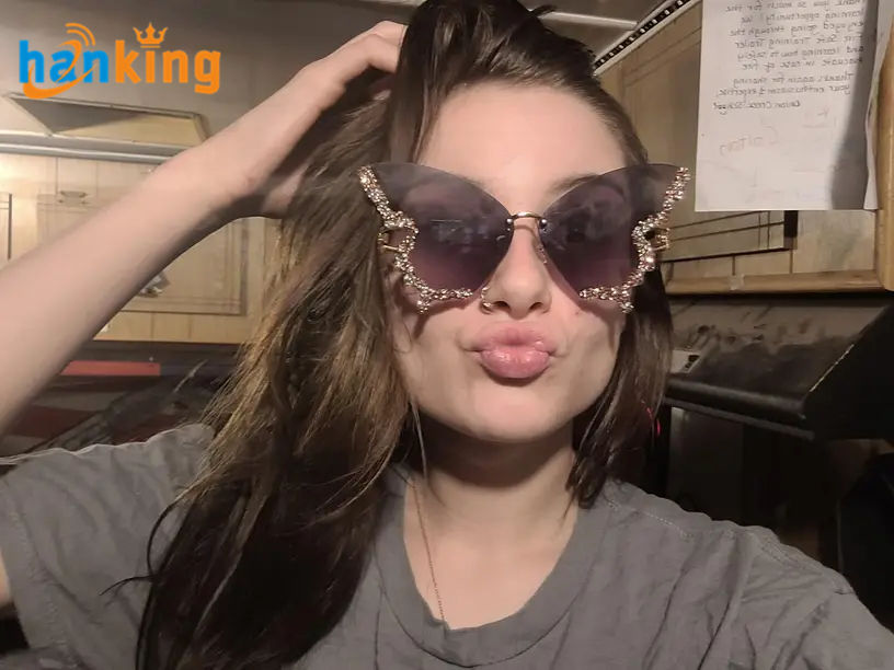 Ehanking Women's Diamond Butterfly Rimless Sunglasses Ladies Luxury Rhinestone Glasses Vintage Rimless Oversized Sun Glasses