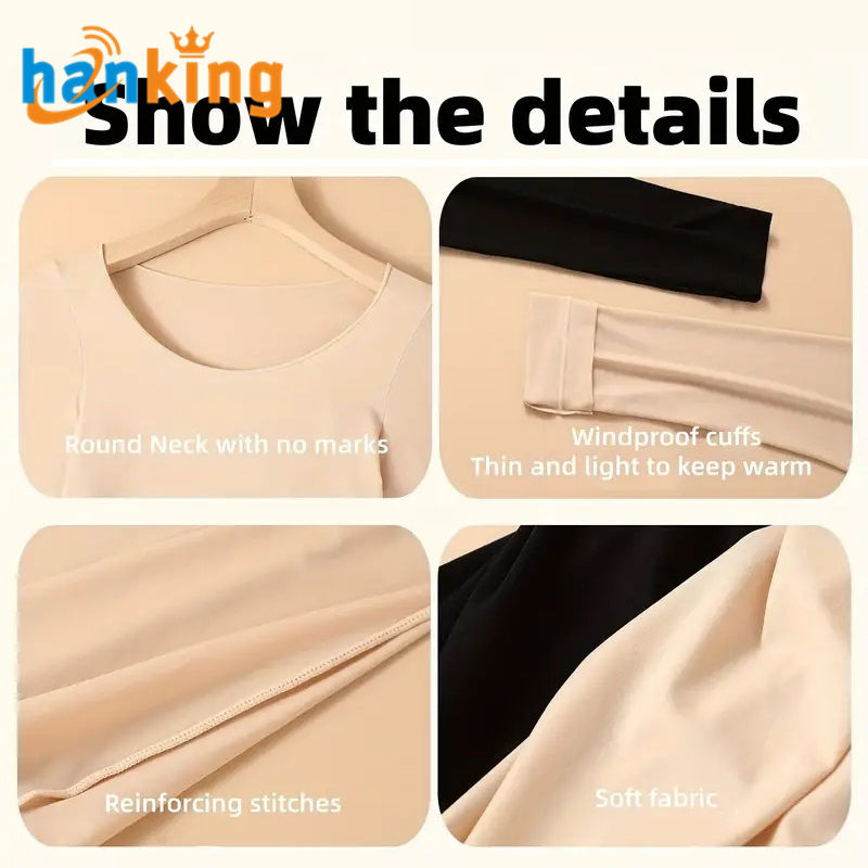 Ehanking Women's Seamless Thermal Underwear Sets Ladies Long Sleeve Slim Ultra-thin Non-marking Invisible Heat Underwear Suits