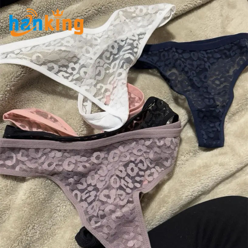 Ehanking Women's Sexy Semi Transparent Thong Female Solid Color Low Waist Floral Lace Thong Underwear