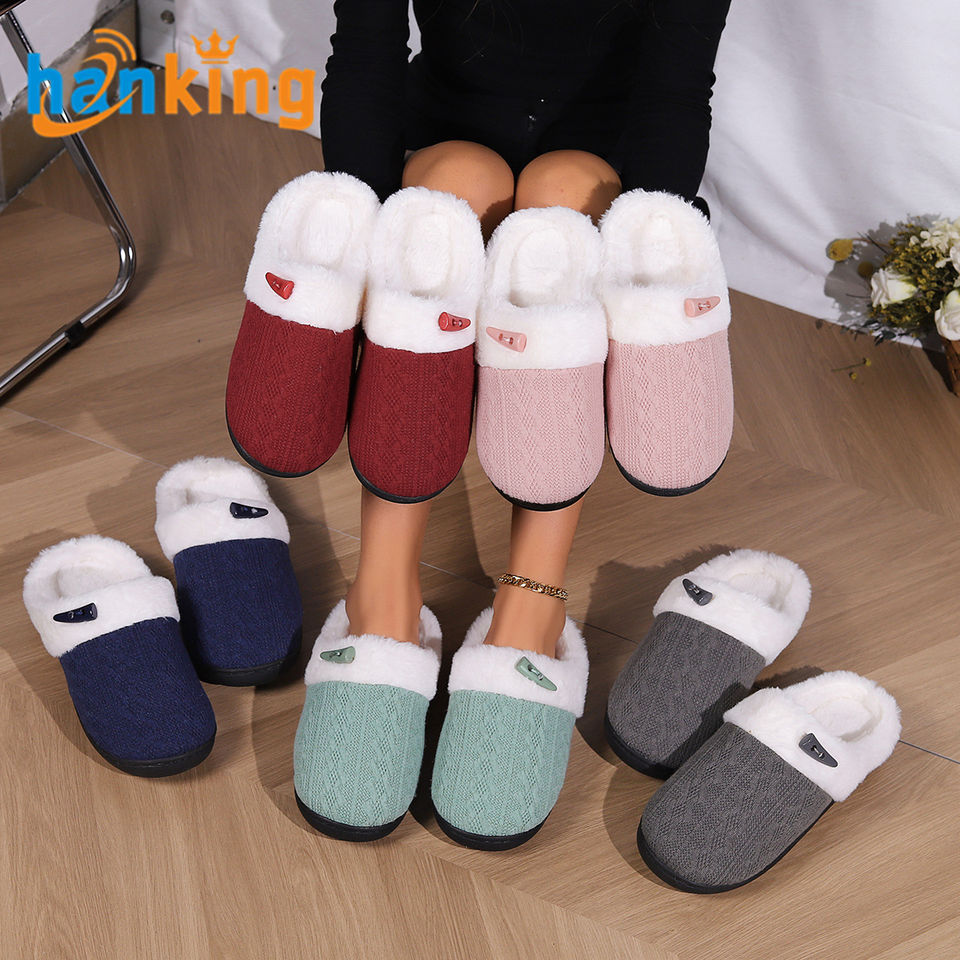 Ehanking Women's Winter Indoor for Slippers Casual Faux Fur Lining Plush Mesh Soft Comfortable with Massage Feature Solid Color