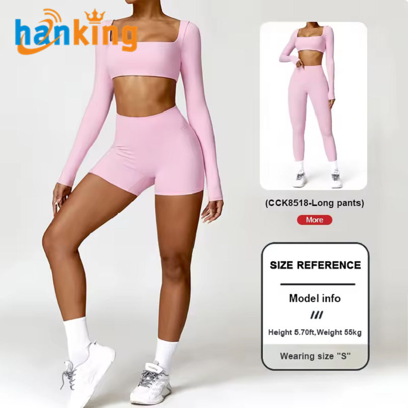 Ehanking Yoga Suit Women's Long Sleeve Crop Tops High Waist Butt Lifting Tight Shorts Running Fitness Sets