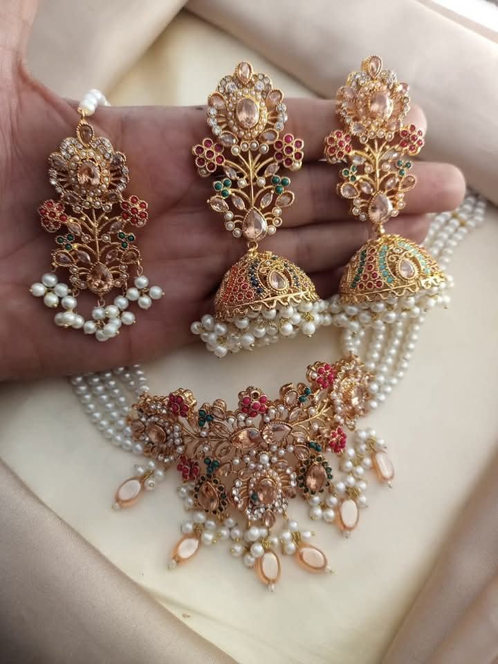 Eid Arrivals Jewelry for Women Wholesale Indian Choker Necklace Bridal Sets With Earrings Fashion Jewelry Set Available For Sale