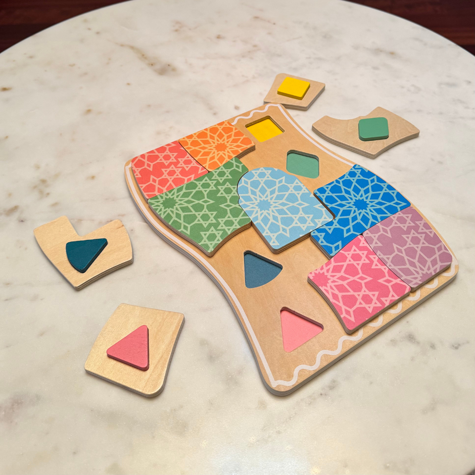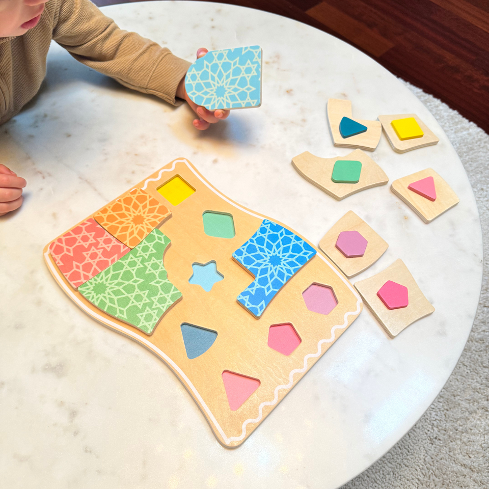 Eid Gift for Muslim Families, Wooden Jigsaw PuzzlePrayer Rug Spatial Reasoning Puzzle