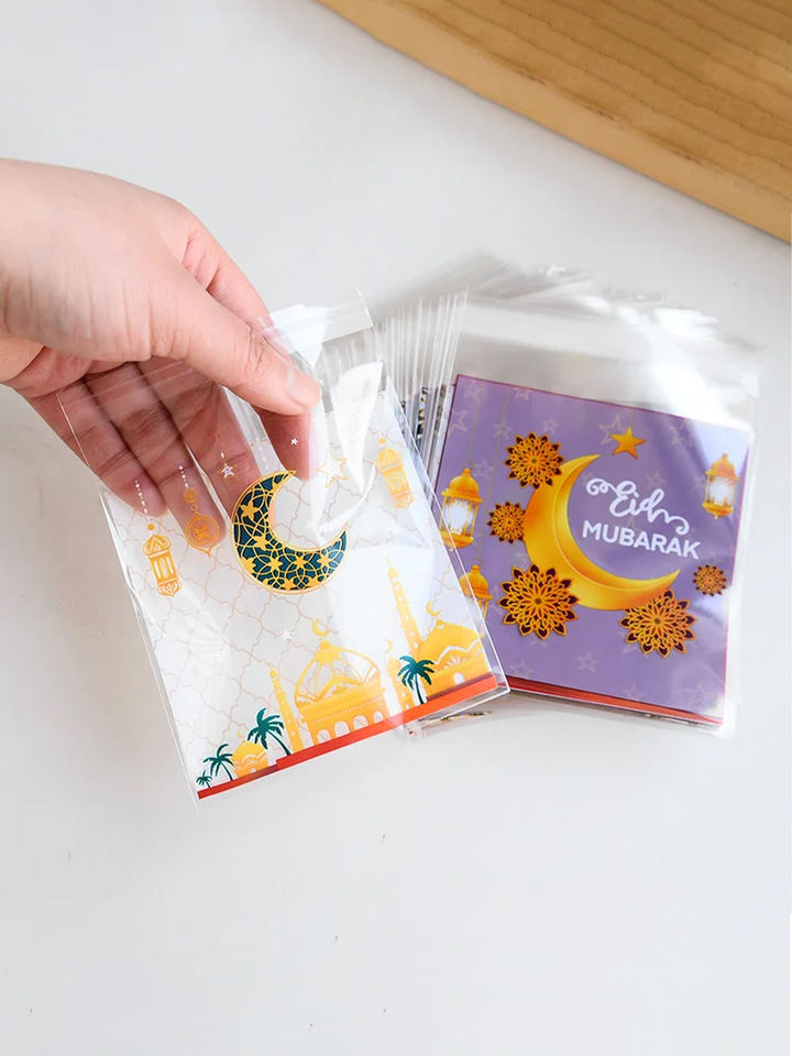 Eid Mubarak Candy Cookie Bag Plastic Moon Star Gift Baking Packing Bags 2025 Muslim Islamic Party Supplies Ramadan Kareem