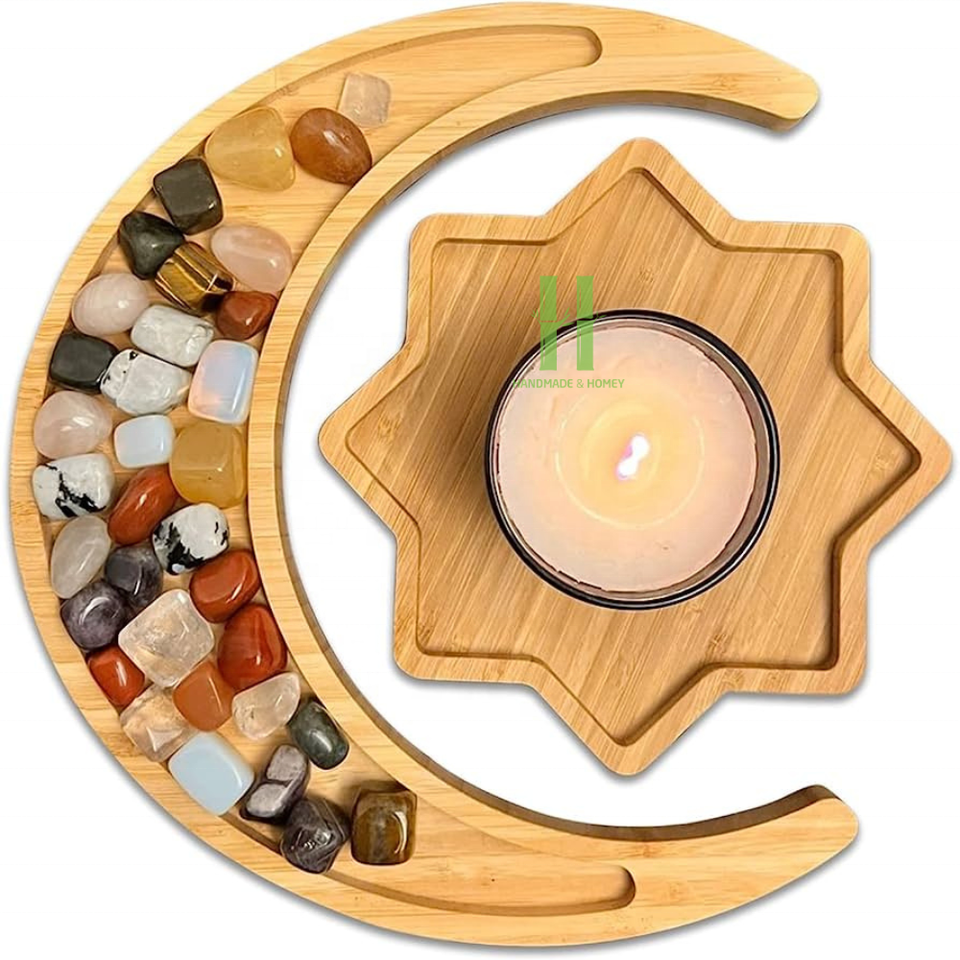 Eid Ramadan Brown Wood Crescent Moon Tray Boho Ramadan Serving Tray Good Choice Dishes Plates for Table Decoration From Vietnam