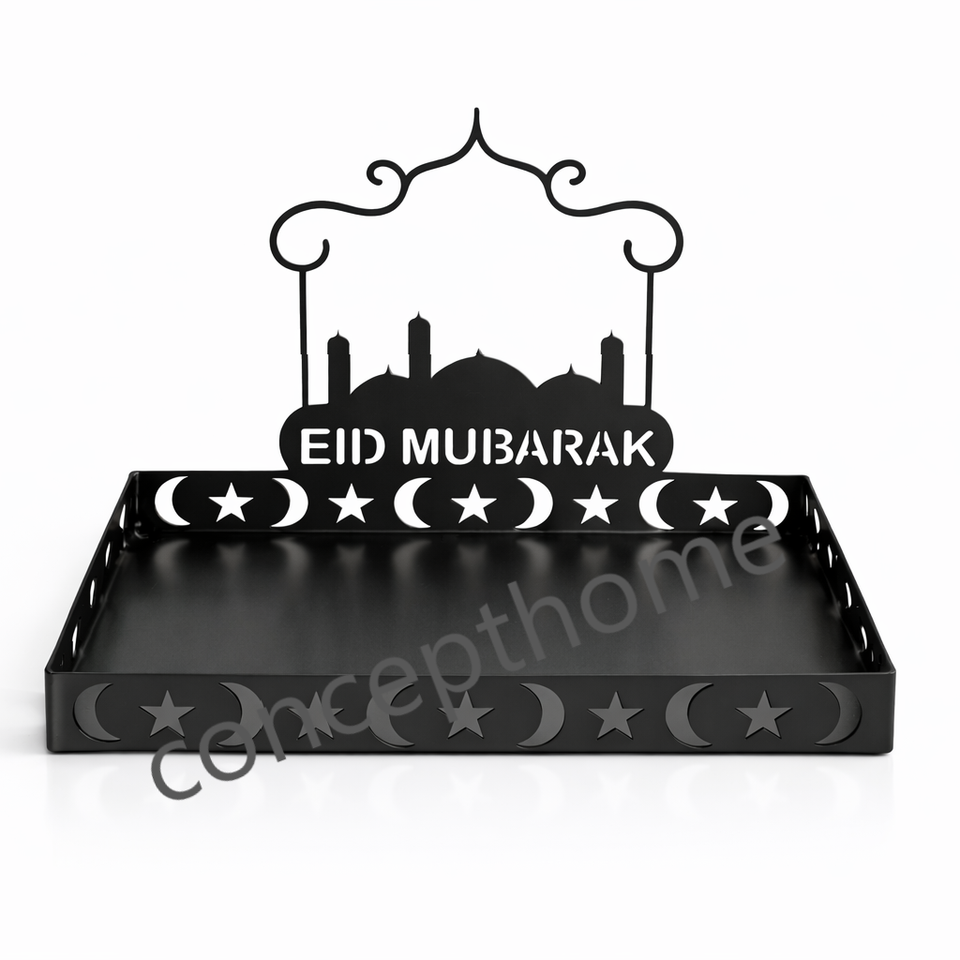 Eid Ramadan Decor Metal Tray Gift Sweet Dessert Chocolate Display Plates Mubarak Party Table Decor