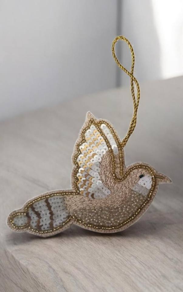 Eid & Ramadan Decorative Dove Zari Hanging with Gold Thread & Sequins – Export Quality Handmade Ornament