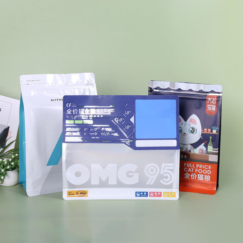 Eight-Sided Seal Zipper Embossed Recyclable Waterproof Moisture-Resistant PE Pet Packing Bag Cat Dog Food Plastic Snack Gift
