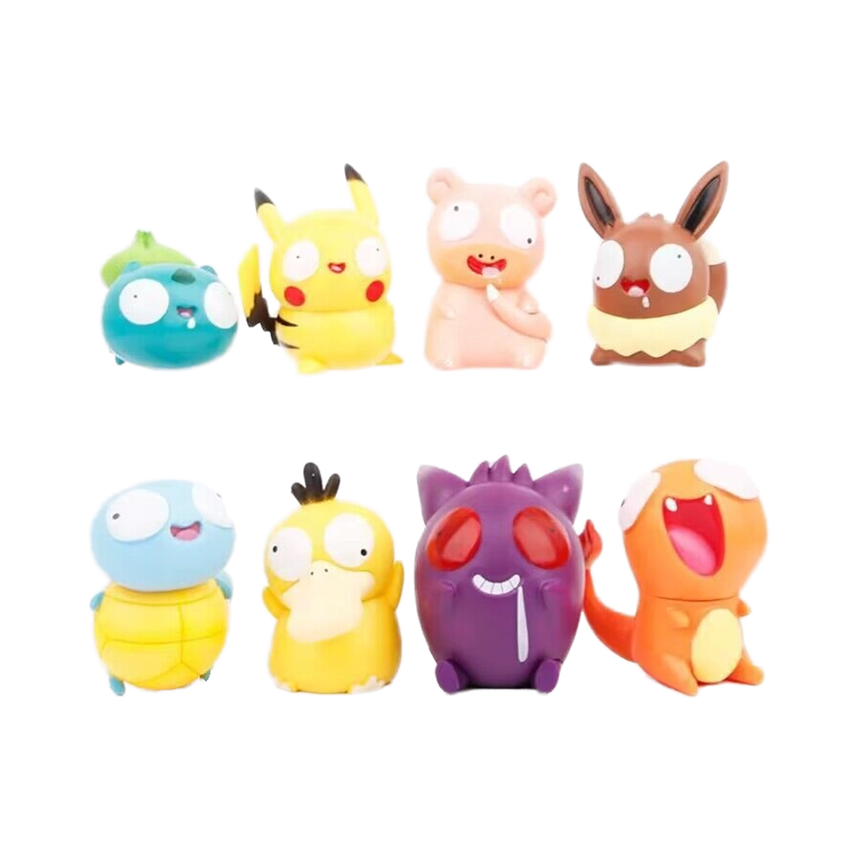 Eight Silly Pet Series PVC Action Figures New Condition Boxed ODM Model Bulbasaur Slowpoke Eevee Squirtle Snorlax Psyduck Gengar