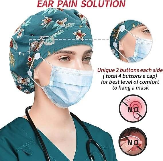 Elastic Back Scrub Cap With Cotton Sweatband For Dental Surgical And Healthcare Professionals