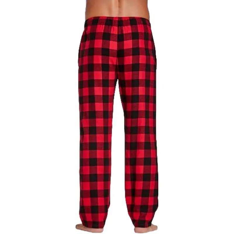 Elastic Waste Men's Straight-Fit Woven Pajama Pant Sleepwear Flannel Plaid Pajamas Knit Sleeping Walking Trouser