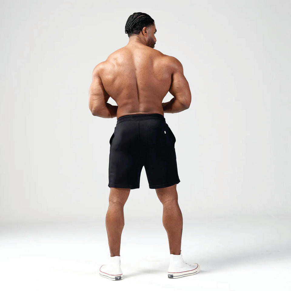 Elasticated Waistband Natural Stretch Fabric Patriot Black Golden Era 7 Inches Retro Shorts With Cotton Feel Drawcord