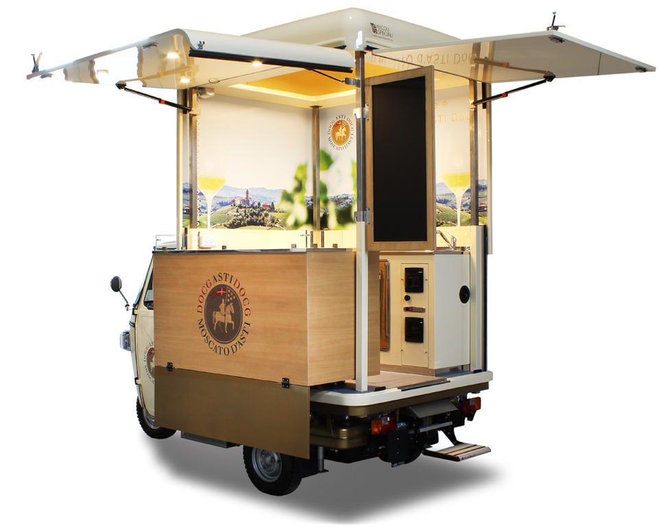 Electric 3-Wheel Mini Truck Pizza Coffee Food Cart Piaggio Ape Style Tuk Tuk Towable Stainless Steel Frame GPS Tracking