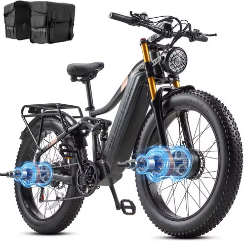 Electric Bike Adults 12V 24" Wheel Aluminum Frame Disc Perfect Gears 12 Speed 2000W/1000W AWD Dual Motors Lithium Battery