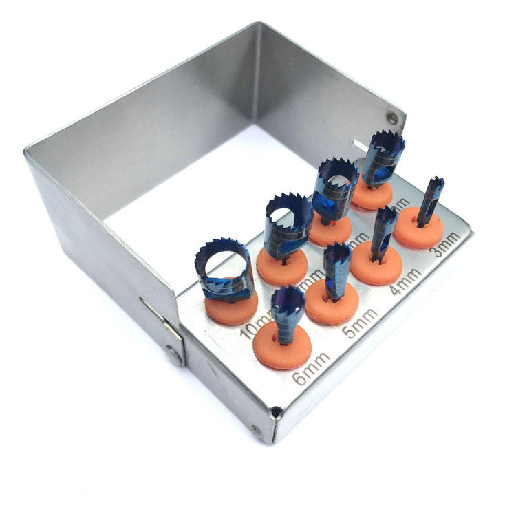 Electric CE Approved Dental Trephine Drills Kit 8-Piece Sinus Lift & Implant Tools with Blue Titanium Coating