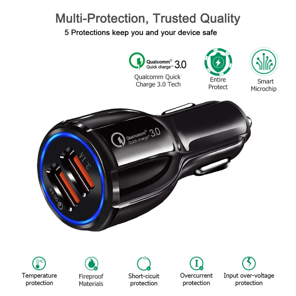 Electric Car Charger Adapter 36w 6.2a Dual Usb Car Charger Qc3.0 12v 2a Quick Charger 2 Ports Fast Charging for Android Samsung