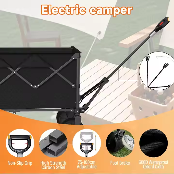 Electric Collapsible Garden Wagon Cart Rolling Foldable Metal Utility Wagon Carts for Camping,Sports,Shopping,Groceries