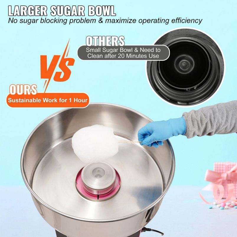 Electric Cotton Candy Machine 1000W with Stainless Steel Bowl for Party Pink