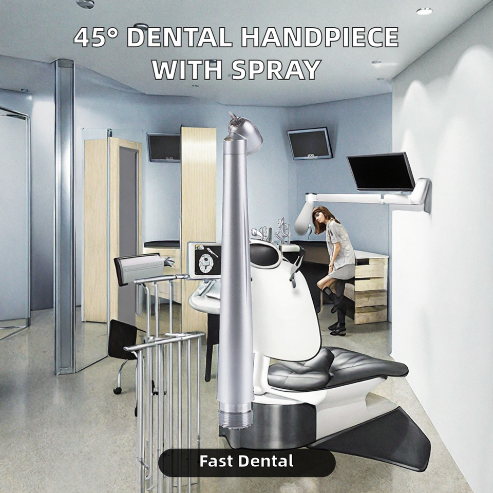 Electric Dental Handpiece with High Speed 45 Degree Turbine Single Water Spray Push Button Control 2/4Hole Surgical Grade