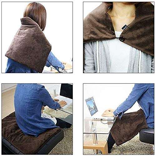 Electric Heated Throw 5V/2A Safety Voltage Fleece Seat Cushion USB Heated Shawl Blankets for Winter for Home Office and Car