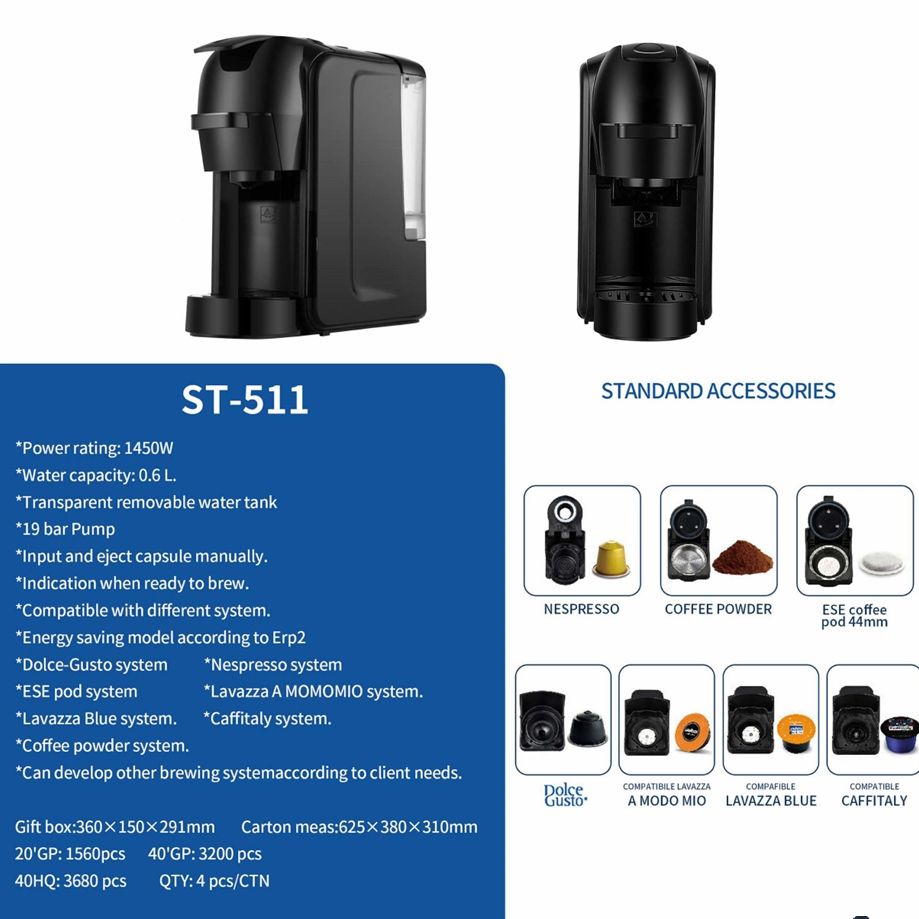 Electric Hotel & Household Single Serve Multi Capsule Coffee Machine 19 Bar Pump Stainless Steel Reusable Coffee Filter