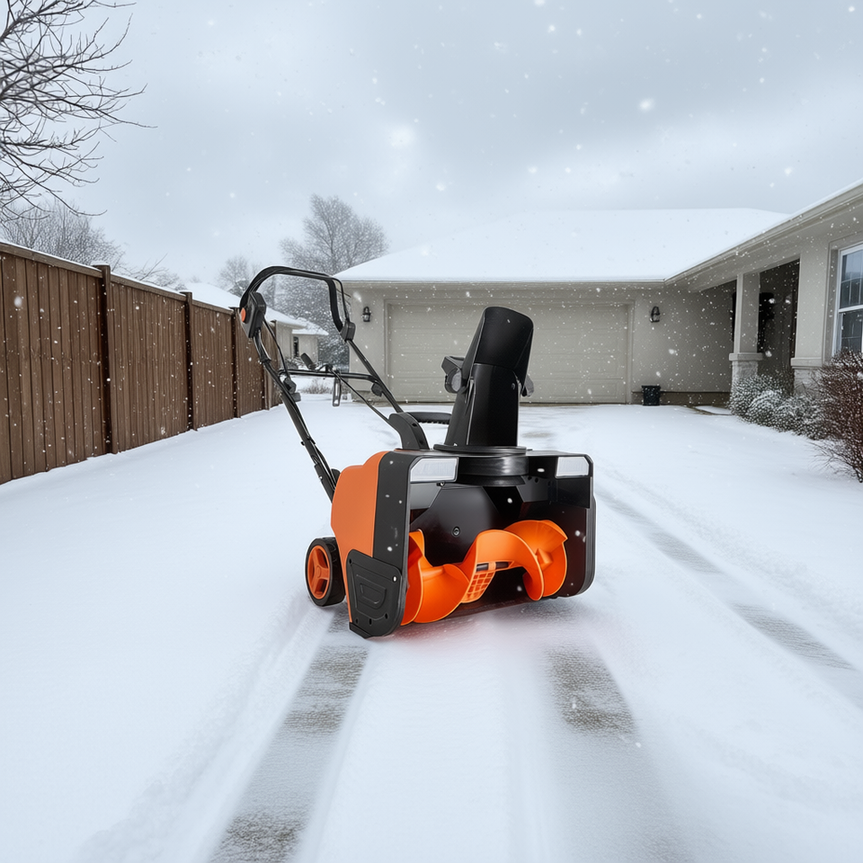 Electric Snow Blower 20 Inch 15A Cord Dual Led Headlights 180 Degree Rotating Chute 25 Ft Throwing Distance 12 Inch Depth