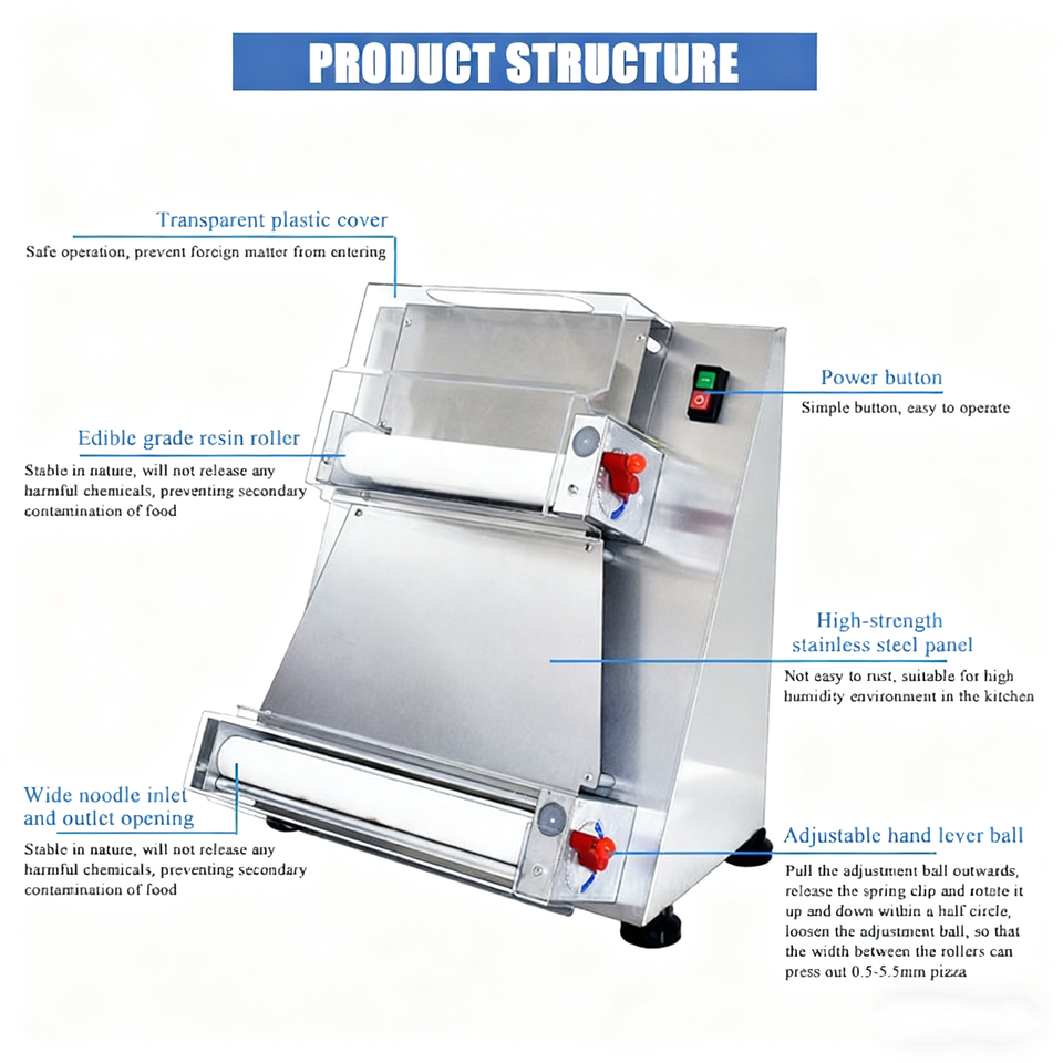 Electric Stainless Steel Bakery Dough Making Machine for Pizza Bread & Cake-Roller Press Sheeter