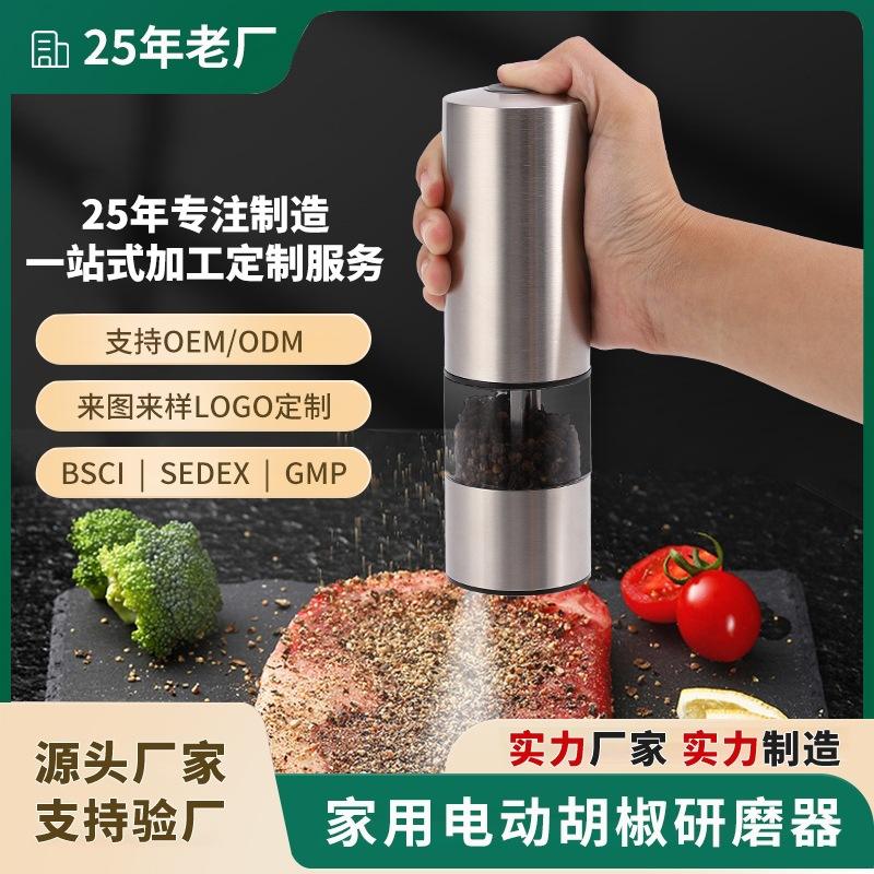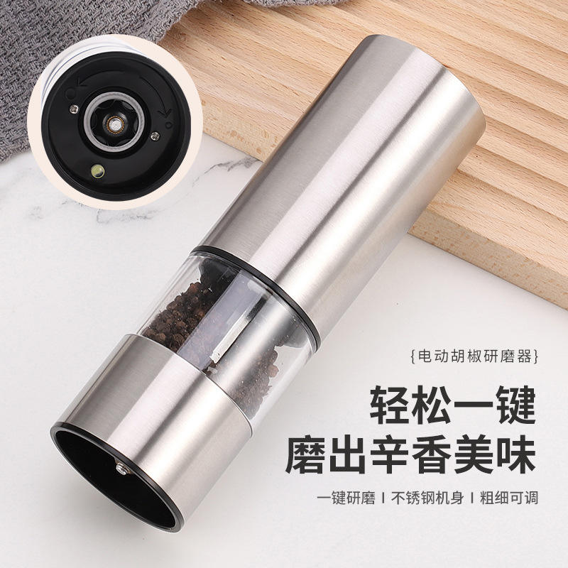 Electric Stainless Steel Pepper And Salt Grinder Cylinder Shape With Transparent Container For Kitchen Use