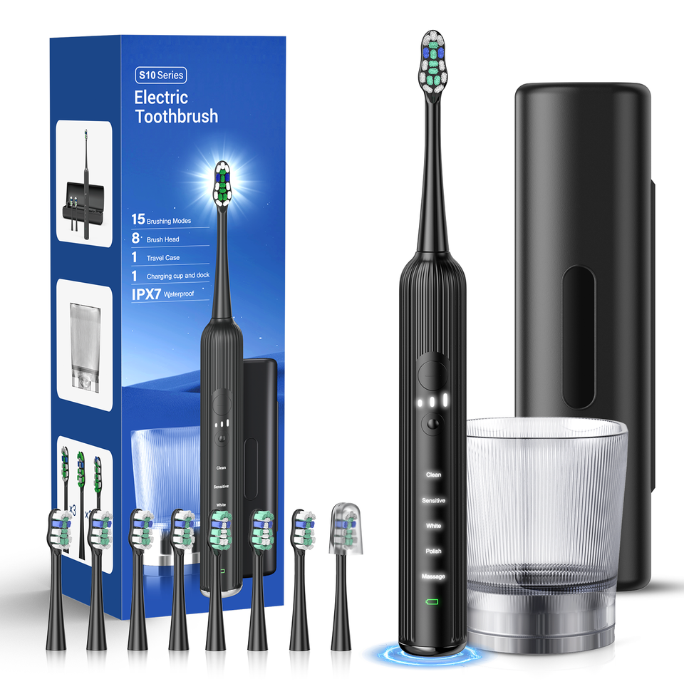 Sonic Electric Toothbrush 8 Medium Brush Heads 5 Modes IPX7 Waterproof Wireless Charging Battery Powered Gum Cup Included