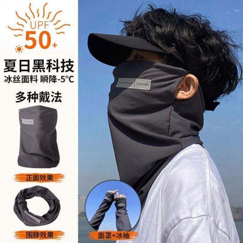 Electric Vehicle Mask Sunscreen Face and Neck Protection Integrated UV Protection Men's Face Ice Silk Sun Mask Riding Scarf