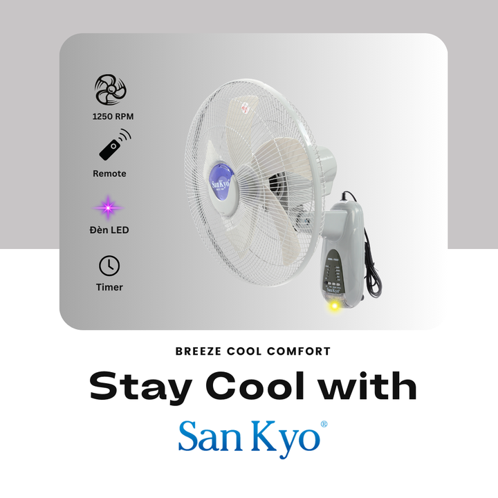 Sankyo B300 Electric Wall Fan 12 Inch 220V Adjustable Mechanical Control with 5 ABS Plastic Blades for Home and Outdoor Use