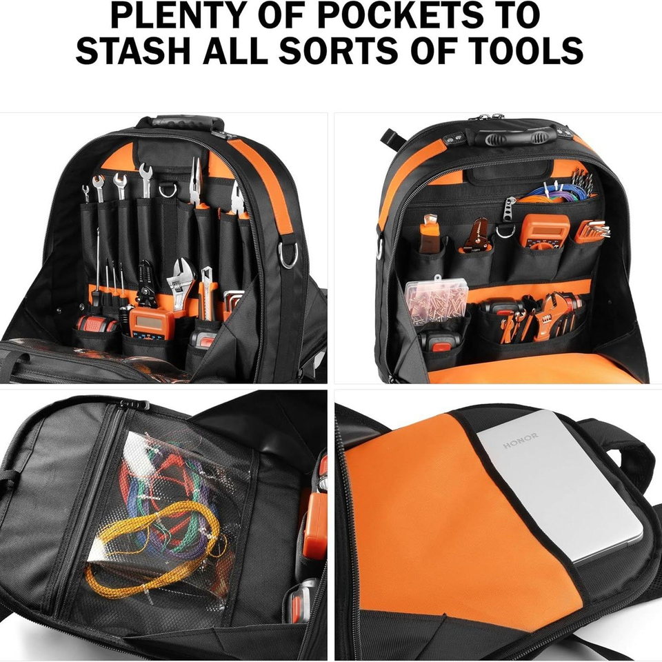 Electrician's Waterproof Multi-Pocket Partition Storage Tool Backpack Thickened Oxford Zipper 46x37x16