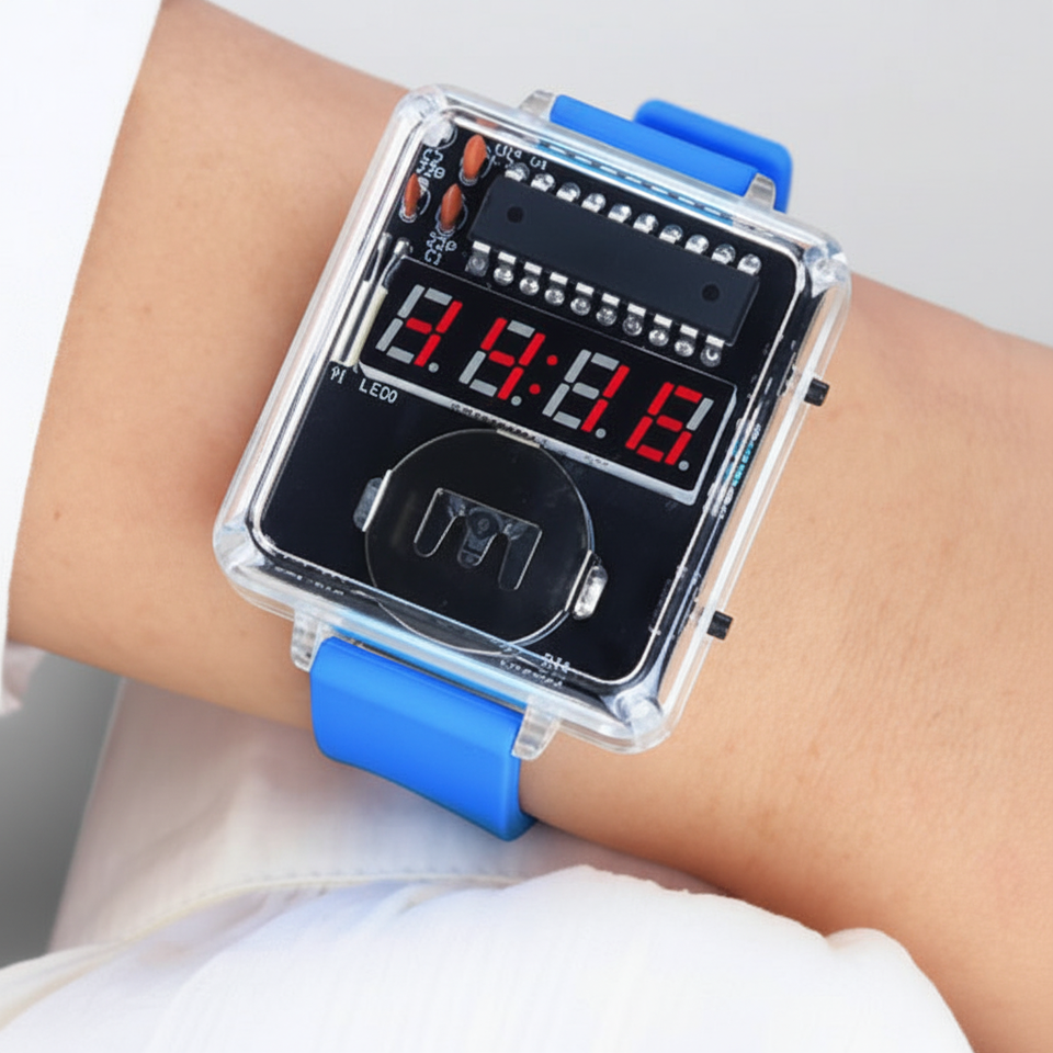 Electronic Watch Diy Transparent Plastic Case Digital Display Led Red Tube Clock Unisex FUNKY Style 22 Cm Band Buckle Closure