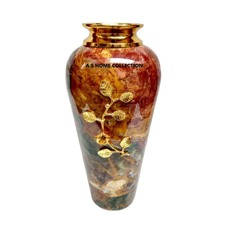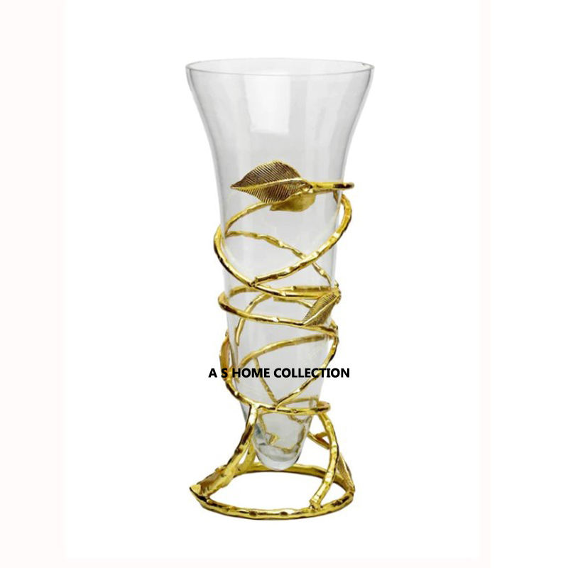 Electroplating Golden Metal Decorative Flower Arrangement Pot Floor Glass Flower Pots & Planters Golden Vase
