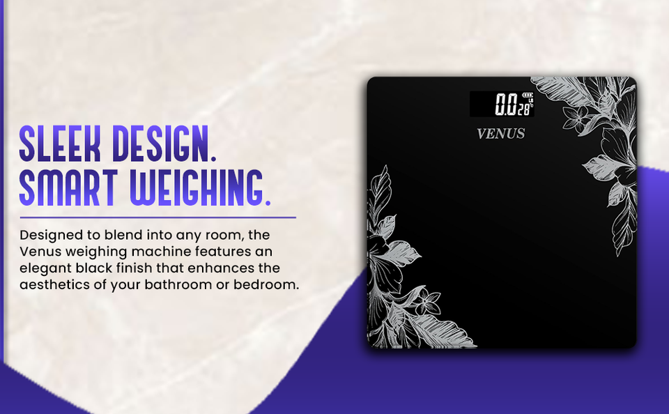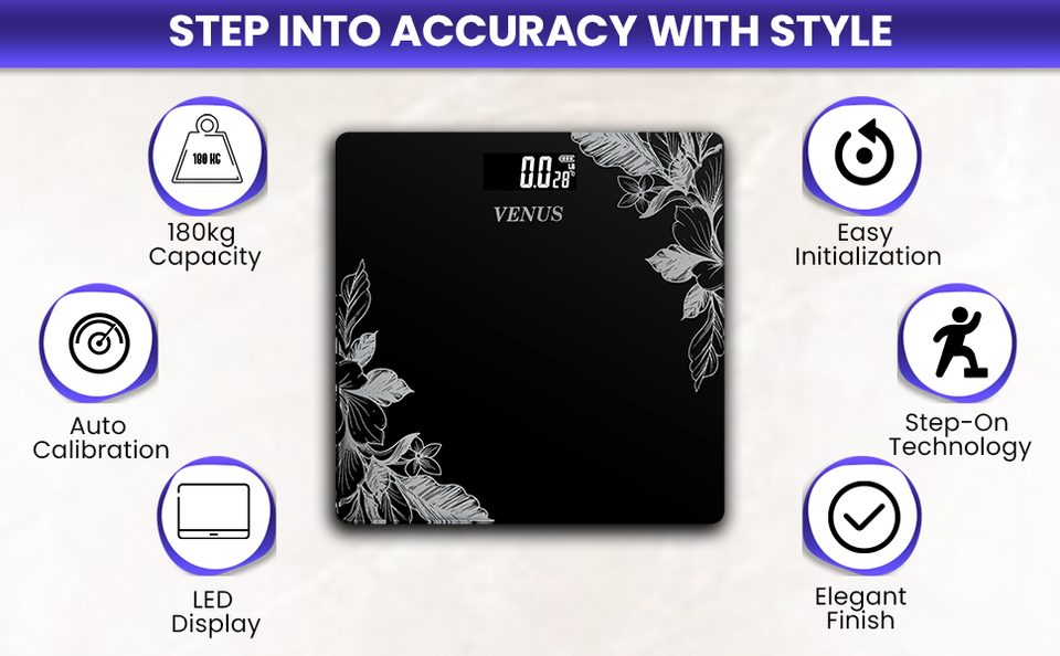 Elegance Color Glass Digital Bathroom Scale 180kg Capacity Low Battery Indication VENUS EPS-2001 Silver 100g Accuracy 1 Year