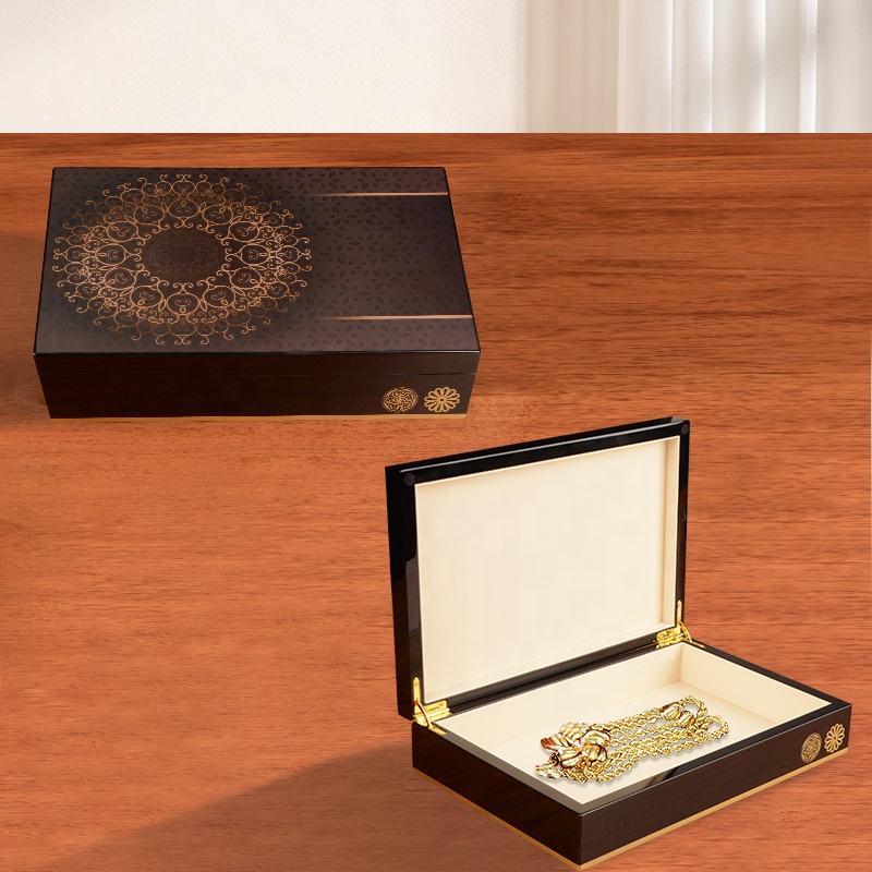 Elegance Luxury High Quality Modern Wooden Jewelry Box Custom Logo Glossy Finish Display Storage Packaging Gift Box Lacquer