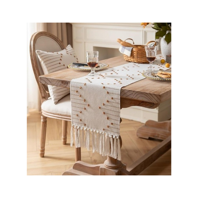 Elegant 100% Cotton Embroidered Table Runner 240 GSM 300TC Jacquard Weave Stain Resistant Made In India Wholesale OEM ODM Export